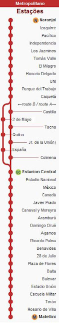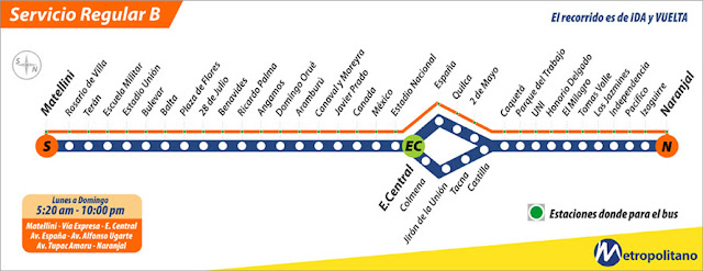 Já a ROTA B segue da Estação Caquetá e atende a região das estações 02 de Mayo, Quilca e España, chegando também à estação Central.