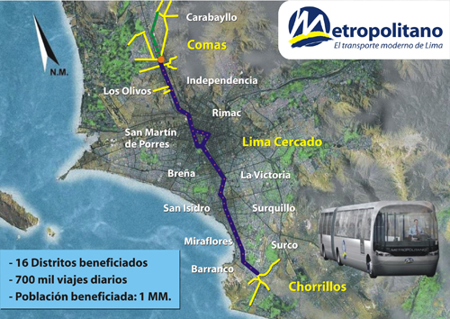 É um sistema de transporte massivo de passageiros - BRT - conhecido como Metropolitano, ou “El Metropolitano”, como é popularmente citado na capital peruana.