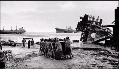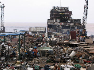Um à um, os navios são encalhados naquelas areias imundas e são prontamente desmembrados por uma multidão de gente desesperada e desesperançada, sem ferramentas adequadas e sem o mínimo de segurança, que se atiram sobre os navios como gafanhotos famintos.