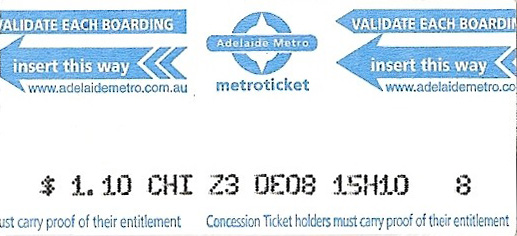 Os bilhetes podem ser usados em todos os serviços de transporte de Adelaide, incluindo VLT’s e Trens. A falta de apresentação de um bilhete incorre em uma multa.