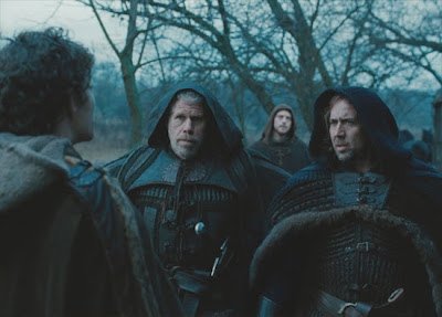 Como visto na sinopse, temos Cage na pele de Behmen e seu amigo Felson (o ótimo Ron Perlman – Hellboy) que depois de se cansarem das intermináveis batalhas na “Terra Santa” retornam para Europa, e a encontram assombrada pela temível de dizimadora Peste Negra.